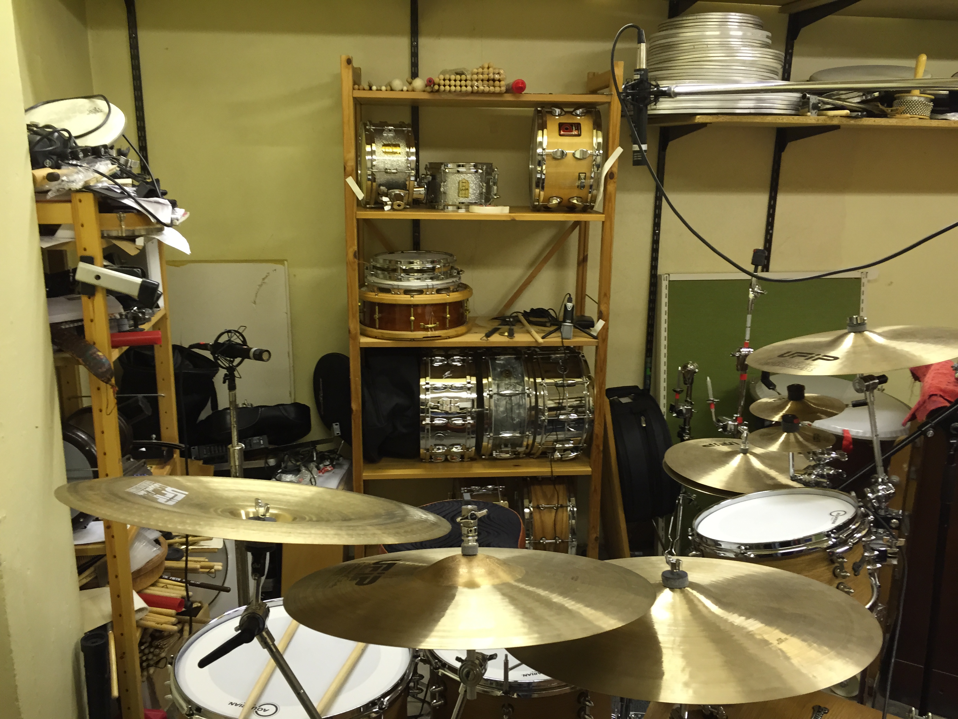 En mick sitter ovanför virveltrumman och den andra i axelhöjd till höger om trummisen. Båda mickarna är på exakt samma avstånd från virveltrumman. Detta är mycket viktigt annars blir det fasproblem.