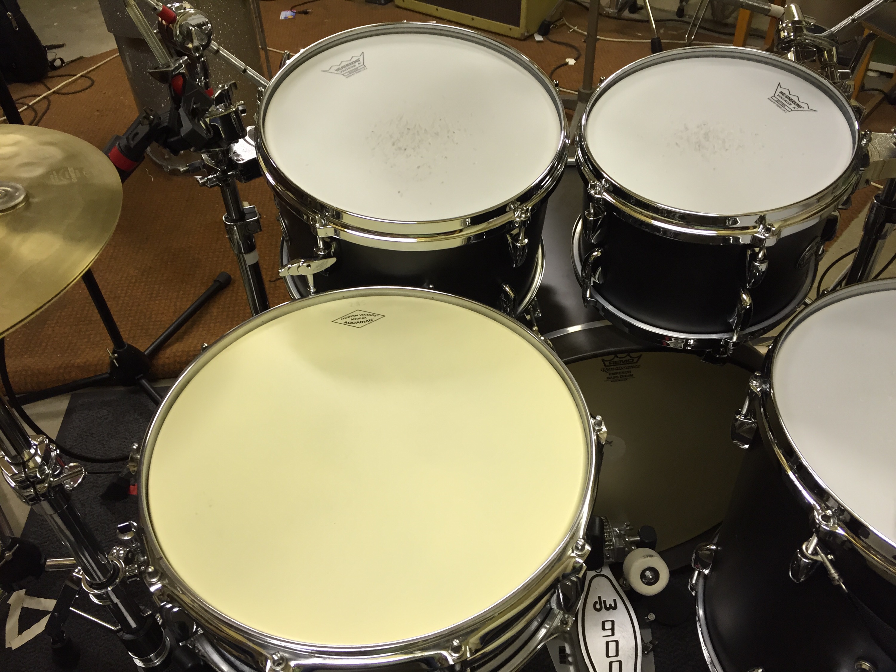 På filmen sitter det ett otroligt gammalt och slitet Ludwig skinn som låter fint men omöjligt att spela visp på. Därför har jag bytt till ett Aquarian Modern Vintage!